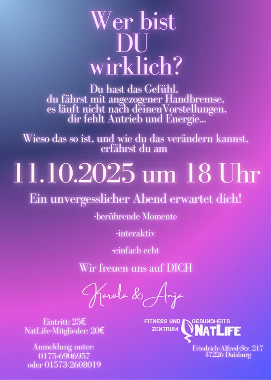 Dieses einzigartige Motivationsevent wird ein wundervoller und interaktiver Vortrag an dem wir dich ermutigen zu dir selbst zu stehen und dich in einem neuen Licht zu erkennen.